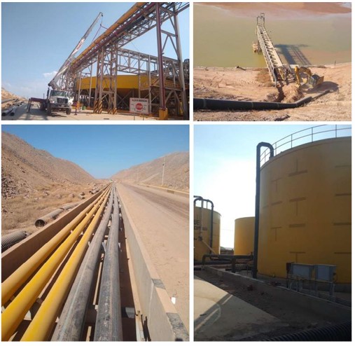 1 km de tubería HDPE 12" instalada dentro de canal de contención y sobre soportes de acero al carbón.